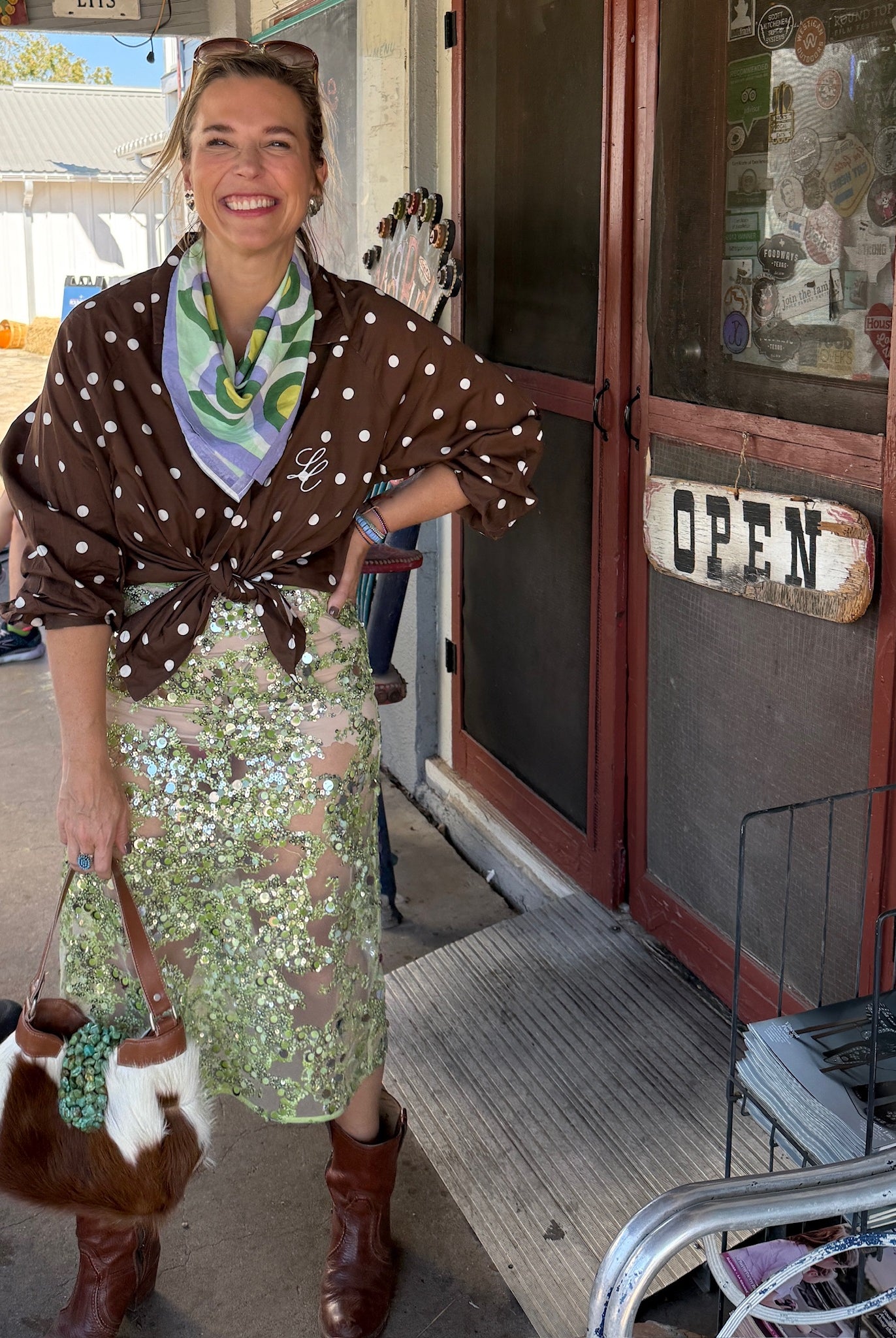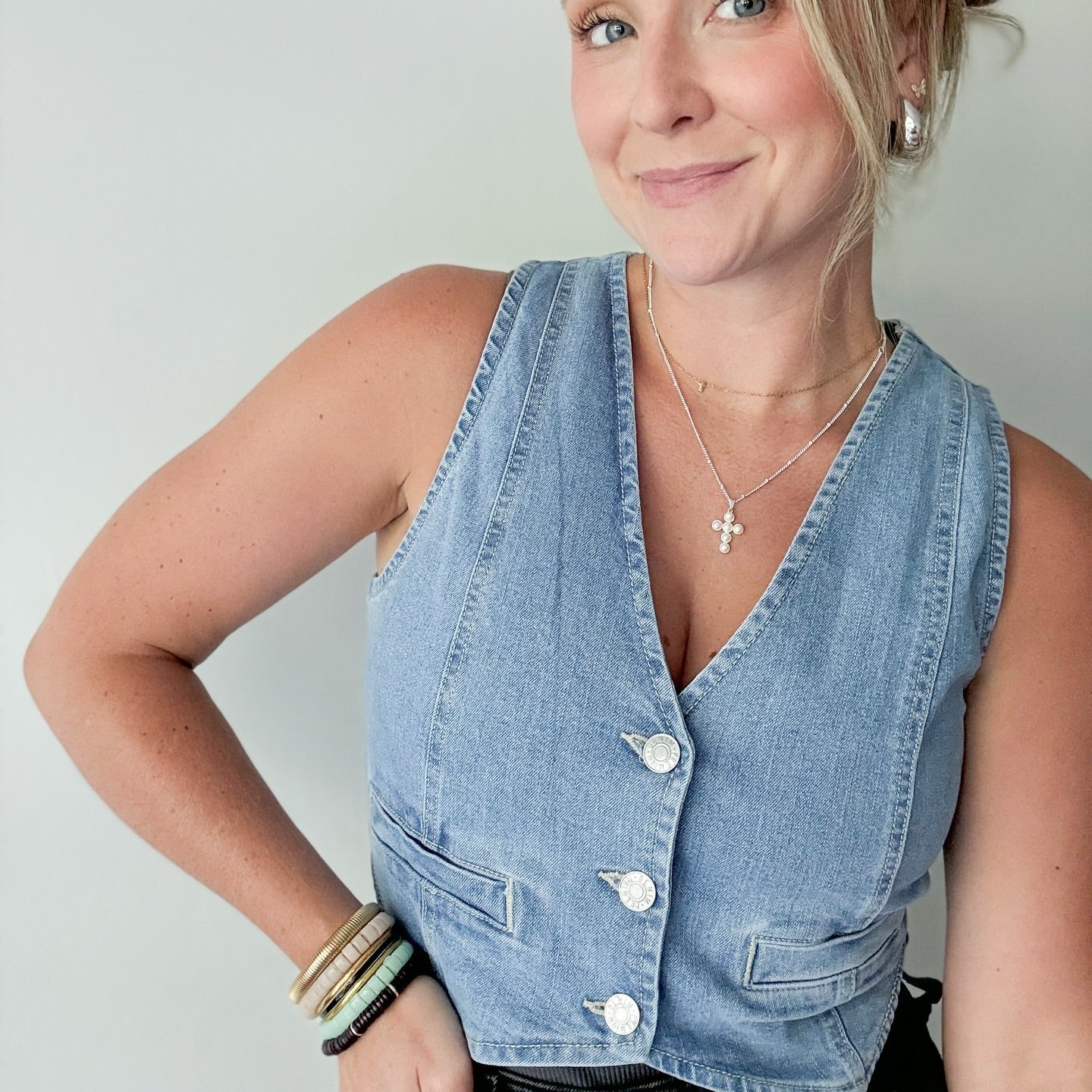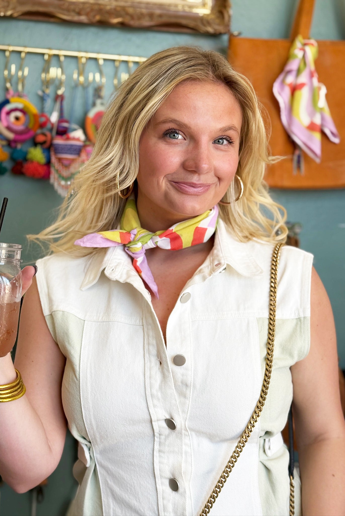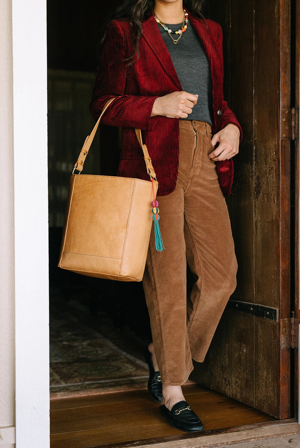 Who says effortless can’t be fabulous? A denim dress, glass blown colorful beads, and my go-with-everything Crescent Sling bag - easy, fun, and totally me.