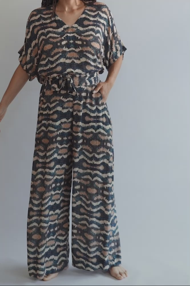Think trousers have to be basic? Think again. Our Full-Length Trouser is guaranteed to carry its weight in your wardrobe. Wear these kaleidoscope-inspired pants with a blouse for a perfect work look, paired with our matching top in Vinita Sky for a jumpsuit-style ensemble, or with a crisp white tee for an elevated casual feel. Finished with a fabric tie waist, these flowy pants are universally flattering.