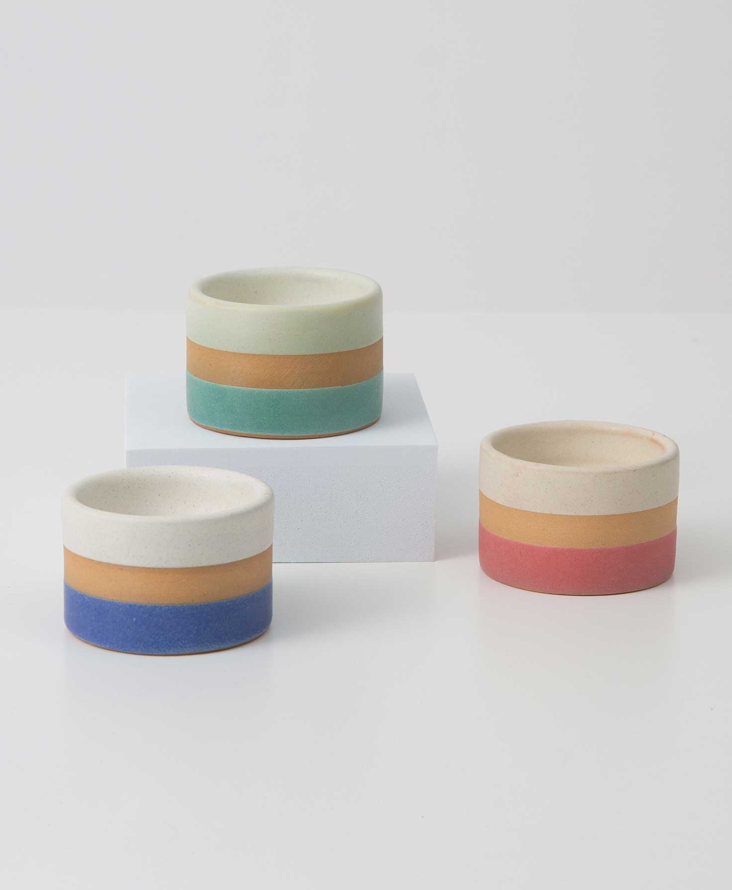 These stone tealight holders are hand-formed and hand-painted, making each one a special way to bring some soft brightness to a room. Collect one of each color, or choose three matching vessels for a simple coordinated look. Sold individually.