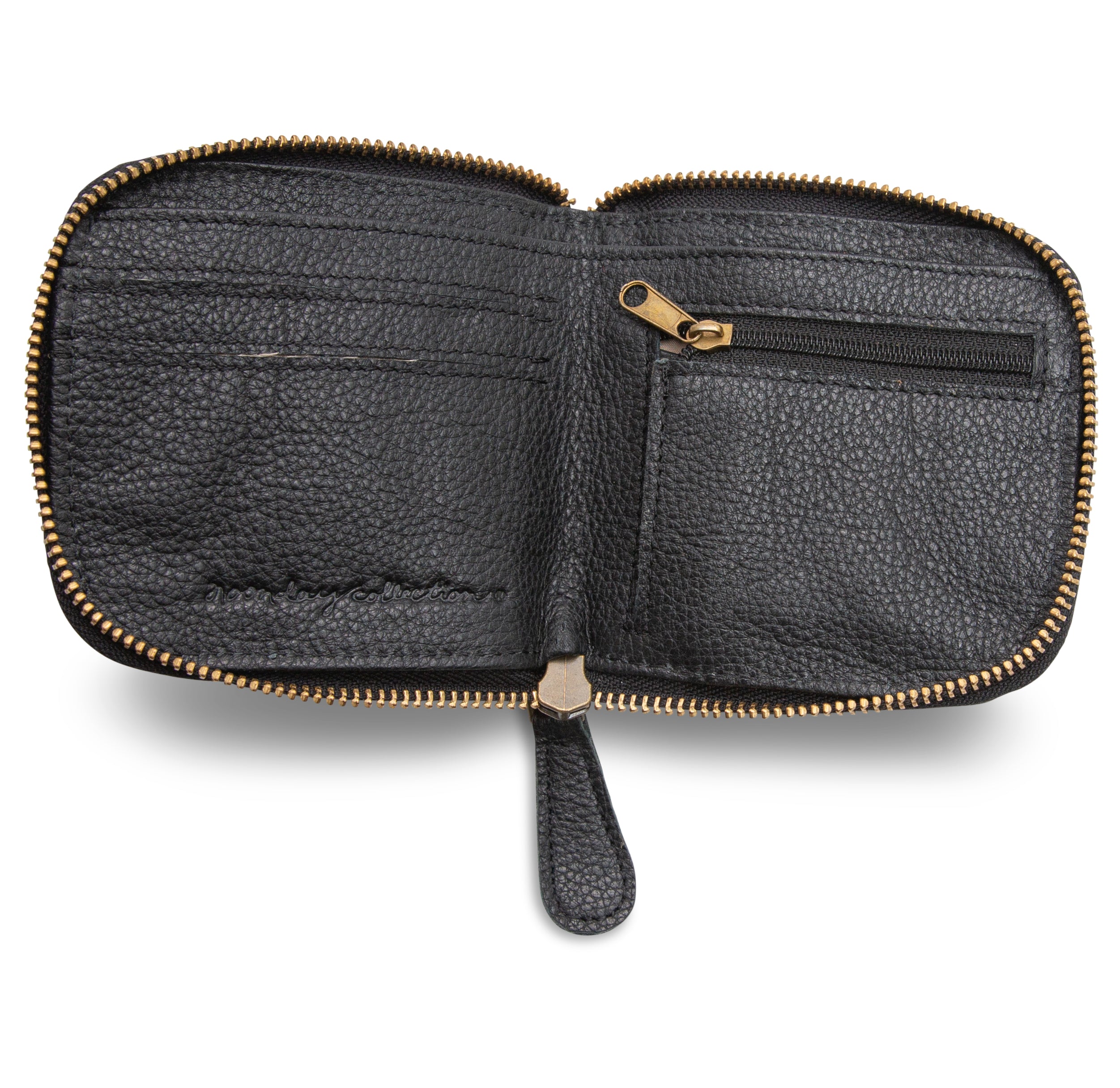 This black leather wallet is made of leather and cotton is handmade along the foothills of the Himalayas in India and provides employment for underserved communities. This functional piece boasts great design with a full zip closure and perfect size.