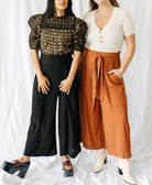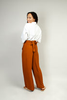 High Waisted, Elastic Waist, Front Pockets, Wrap Tie, Full Length | Size 1: 43" Long, 32"-38" Hip, 29.5" Inseam, Fits US Sizes 2-8 | Size 2: 43" Long, 40"-46" Hip, 28.5" Inseam, Fits US Sizes 10-16 | Size 3: 43" Long, 48"-56" Hip, 22" Inseam, Fits US Sizes 18-24