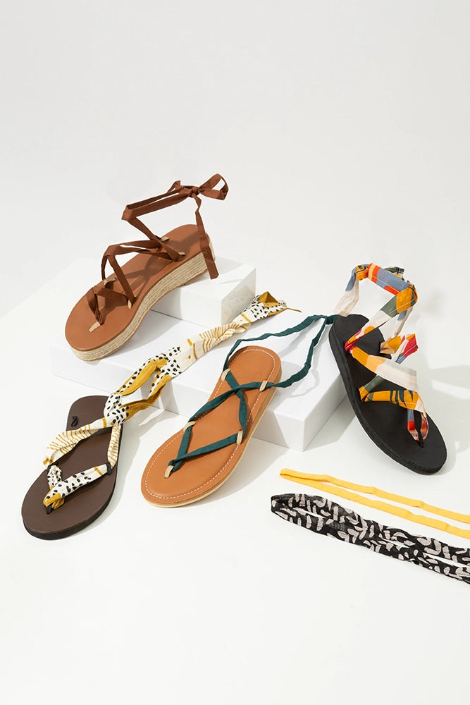 Endless versatility is just a step away with our Sseko ribbon sandals! Each ribbon can be used with any of our Sseko Ribbon Sandal and Wedge Bases (sold separately). Weave them through the loops on the base in many different ways to create a variety of unique looks.