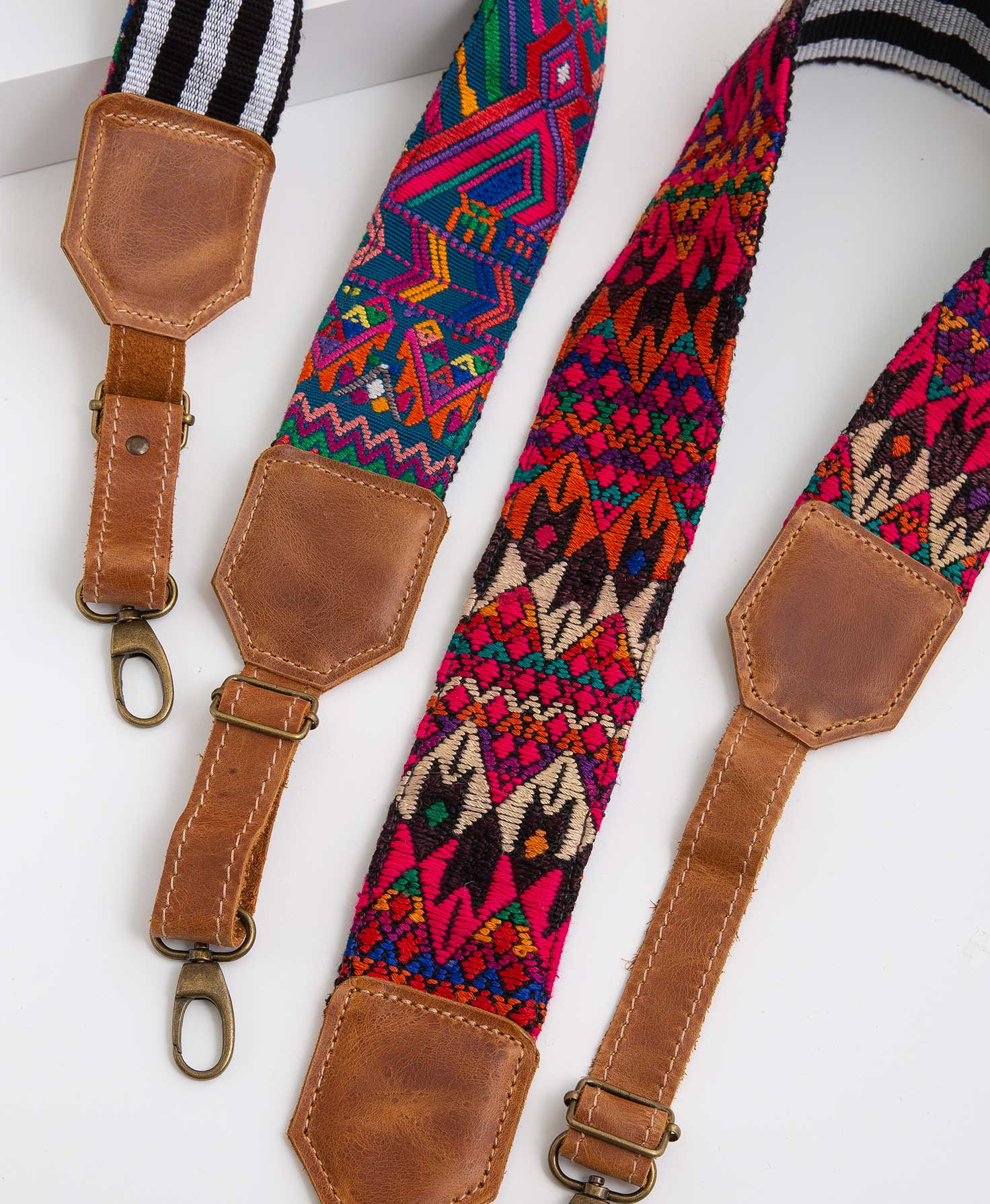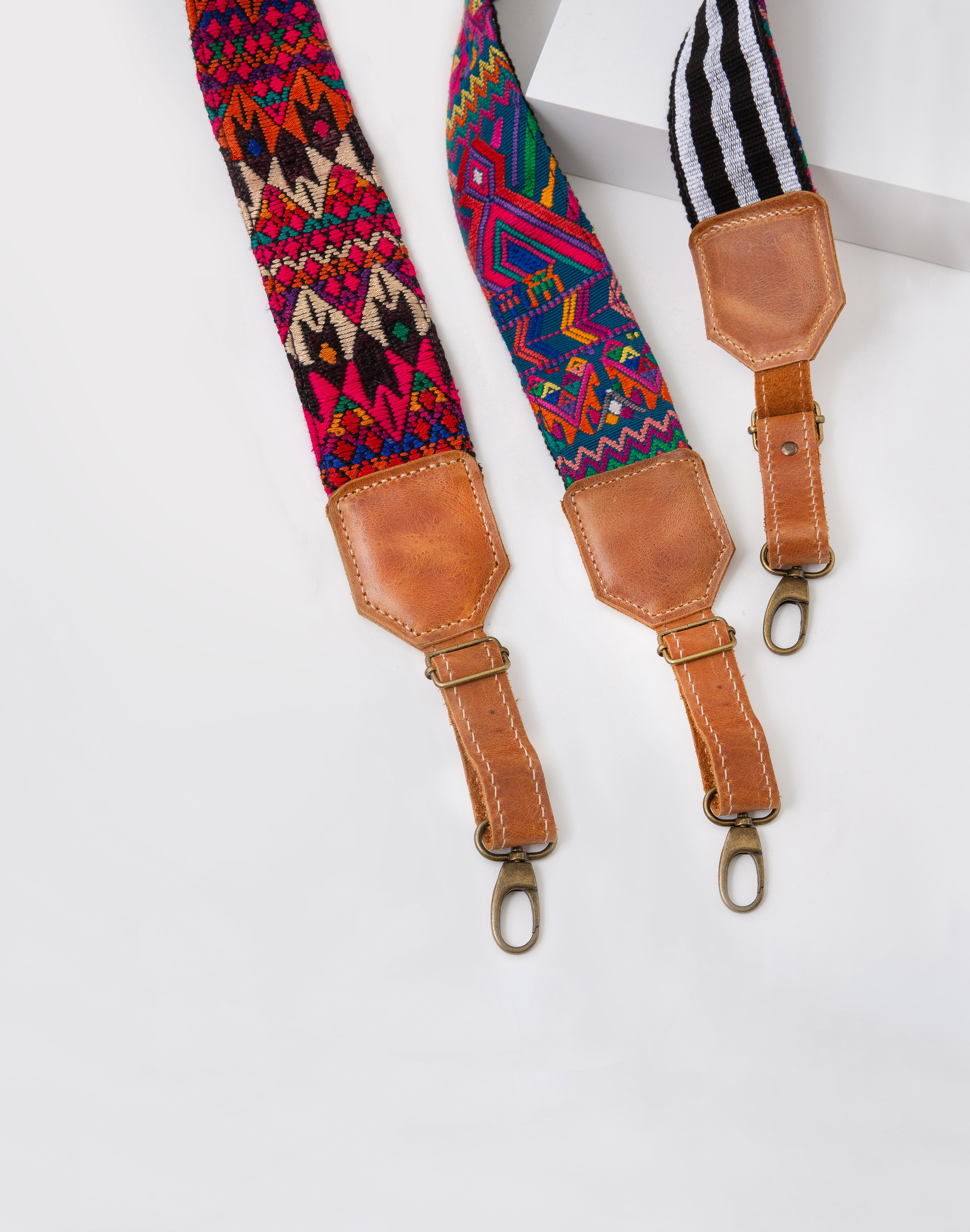 Classic leather and handwoven Guatemalan textiles in an assortment of vibrant patterns lend instant interest to any bag. The Vivid Embroidered Strap can be used with any bag that features a removable strap and can be adjusted a few inches for your perfect length.