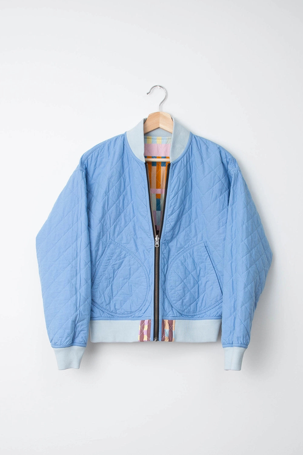 Two jackets in one! The Quilted Bomber Jacket is back in a new Mixed Stripes pattern. This jacket is designed for color lovers, layerers, and anyone who likes their wardrobe to feel as creative as they are.