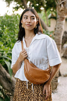 This rich brown leather crescent purse can be worn as a long shoulder bag or crossbody bag, or adjusted to be worn close to the body as a stylish sling bag. A convertible bag with a slim silhouette, the Crescent Sling is as sturdy as it is chic.