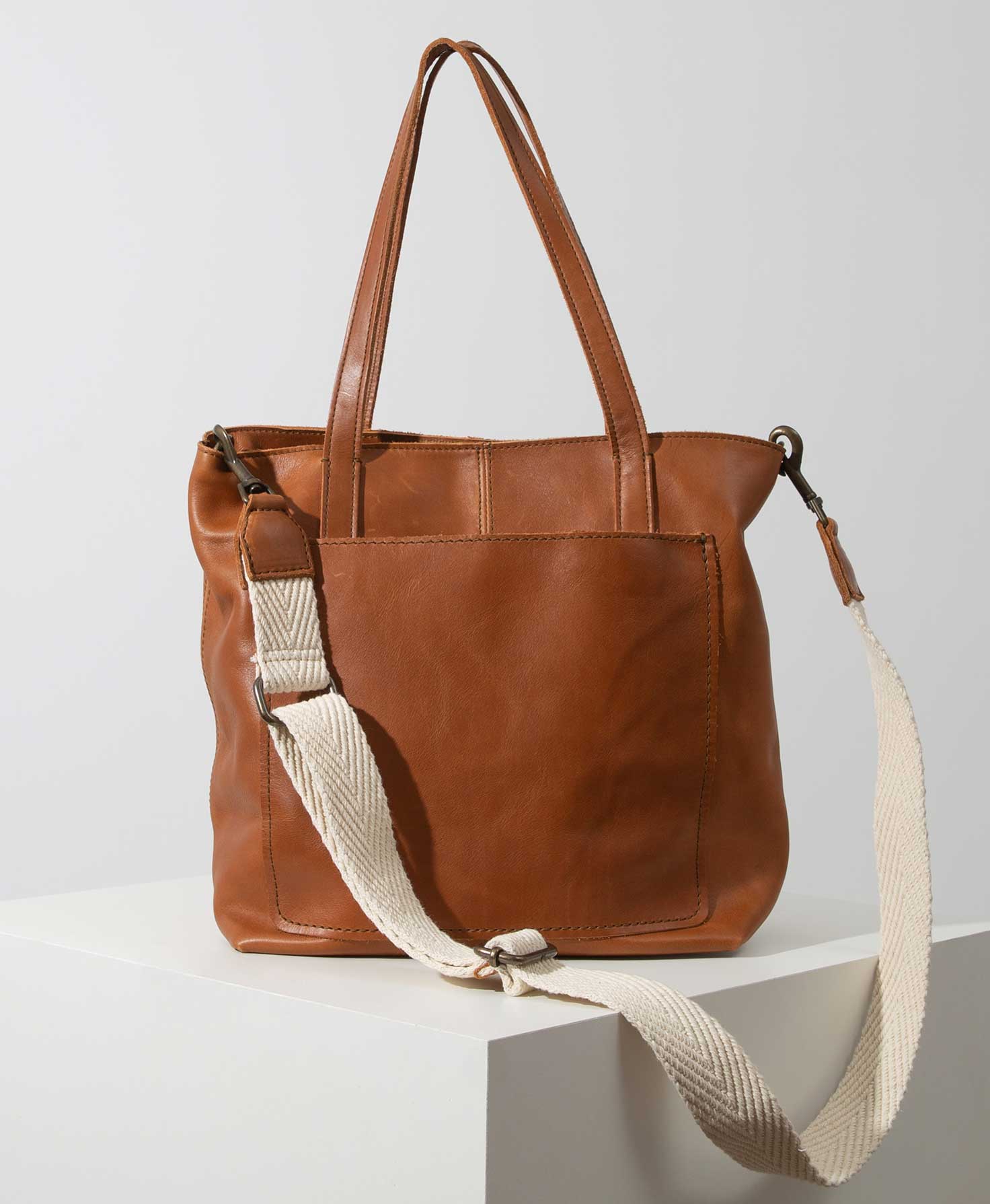 This classic tote is handcrafted by Mexican Artisans using high quality, environmentally sustainable leather. The cream colored woven strap gives the bag a versatile look, and can be swapped out with another Noonday strap for a whole new feel.