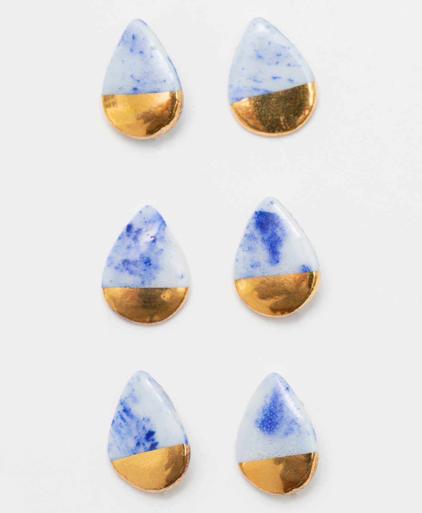 Porcelain, Glaze (Shade Varies), Gold Luster, Surgical Steel Post