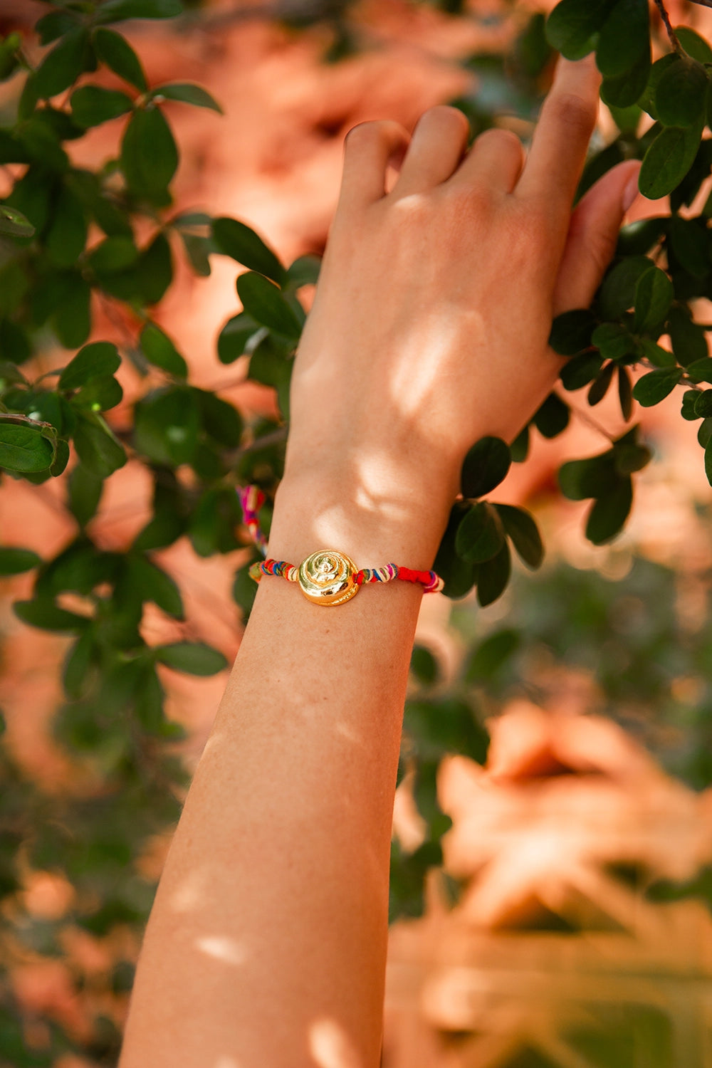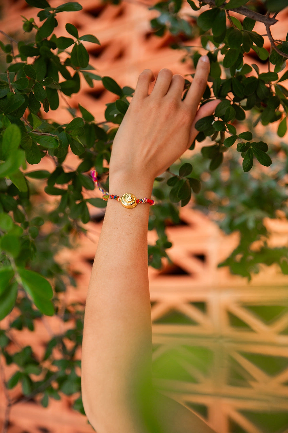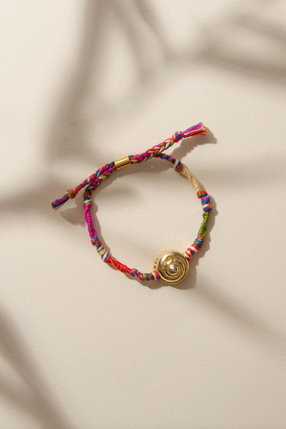 The Casted Snail Knotted Bracelet is a symbol of patience, progress, and moving forward with intention. Featuring a casted metal snail charm centered on vibrant, hand-knotted threads, this bracelet blends meaningful design with playful color.