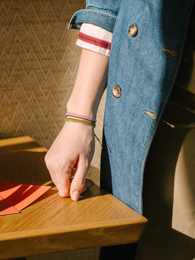 Your favorite 90s accessory is back and better than ever, with a variety of stylish hues that will bring a pop of color to your wrist--and a friend's. We've updated the tried-and-true style to create a modern friendship bracelet that can be adjusted to fit any wrist. Choose two to layer, or grab one for you and one for a friend to help you feel connected, whether near or far.
