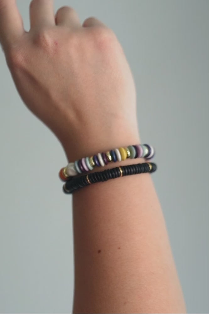 These handmade beads are crafted from natural materials that are dyed with colors that may bleed when exposed to water. To prevent color bleeding and maintain the bracelet's appearance, please remove it before washing your hands.