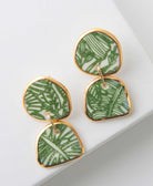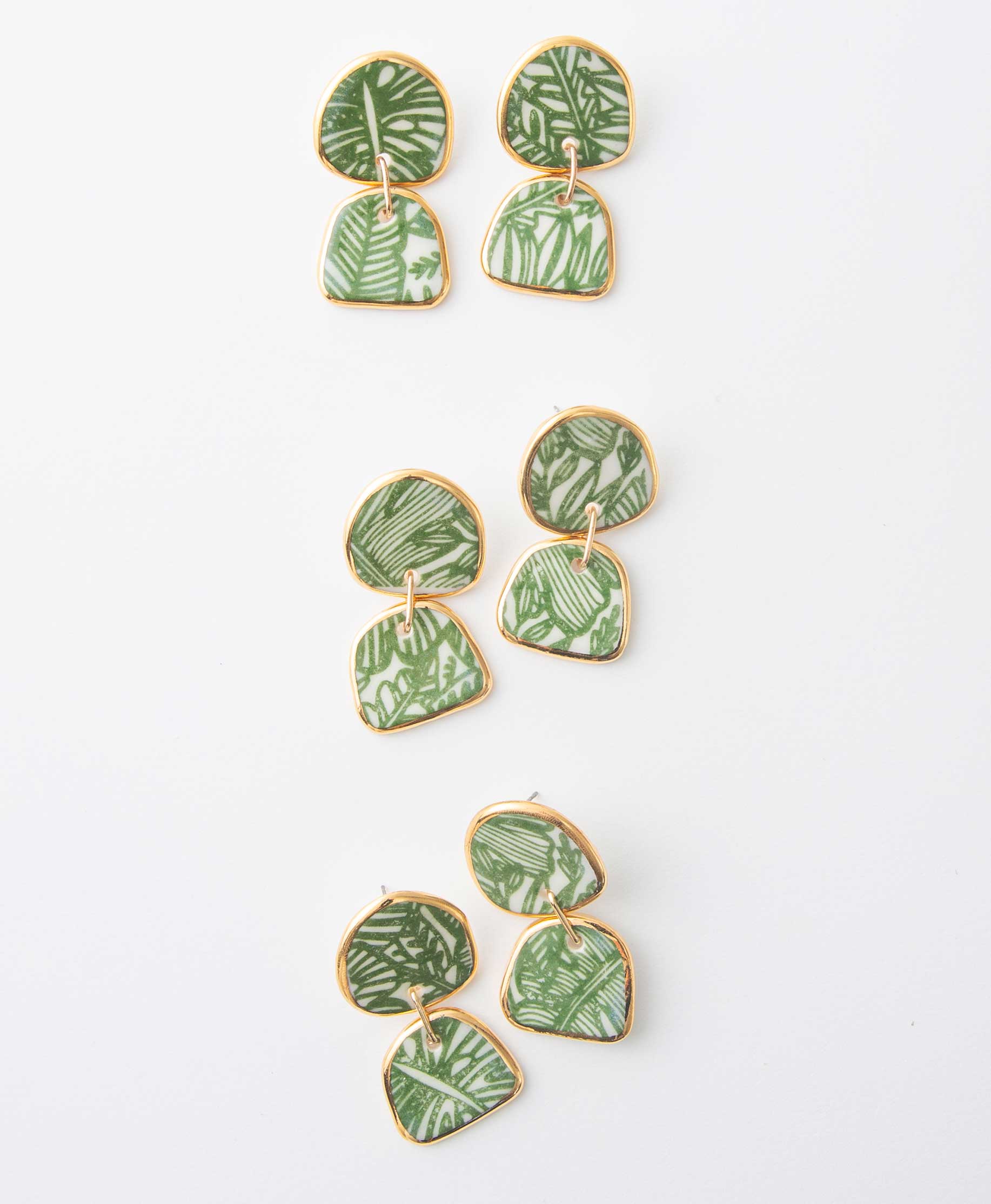 The Bungalow Earrings are crafted from smooth porcelain and feature a delicate foliage print that varies from pair to pair. No matter where you wear them, these breezy earrings will transport you somewhere warm and sunny.