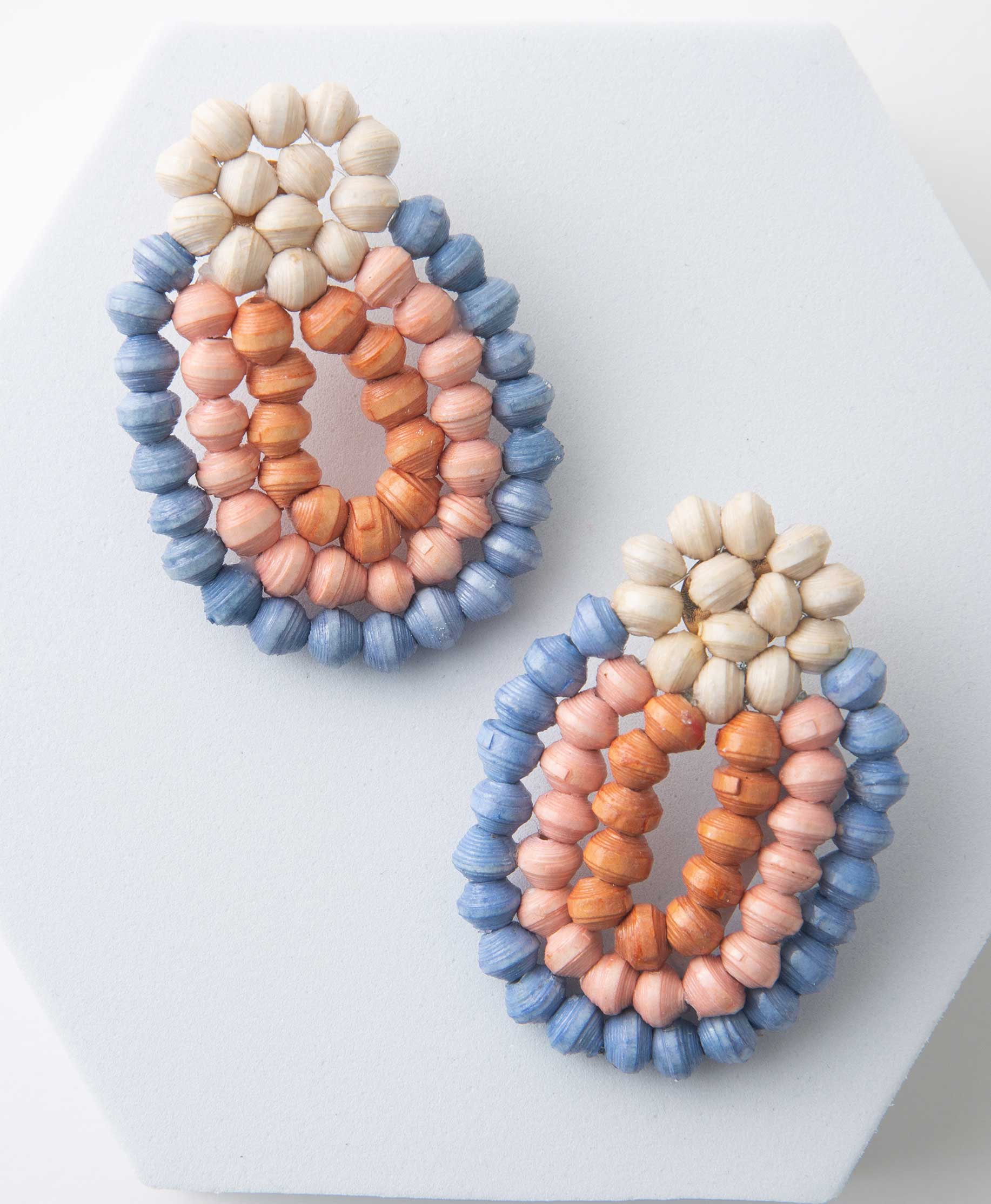 Paper beads in soothing shades inspired by clouds and sunsets come together to create this sweet pair. Each tiny bead is hand-rolled by Artisans in Uganda, for a truly unique accessory.