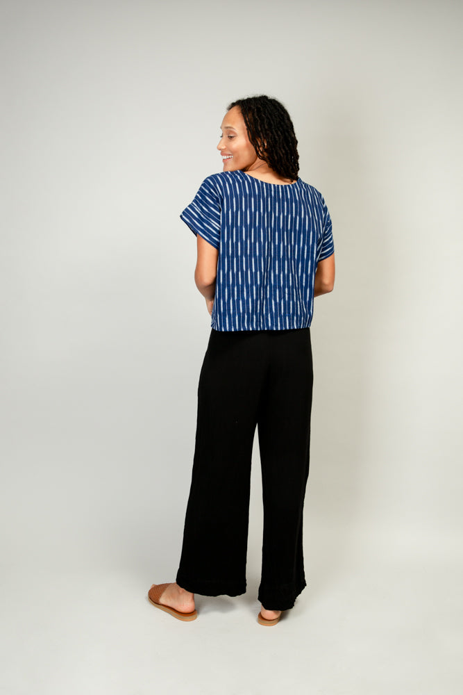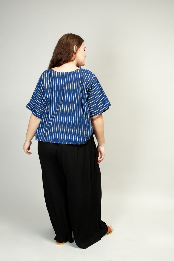 Our breezy Crop Blouse features a modern cropped silhouette that looks effortless no matter how you style it. The blue geometric ikat pattern is named for Jodhpur, the blue city of India and one of our favorite destinations for artisan-made treasures.