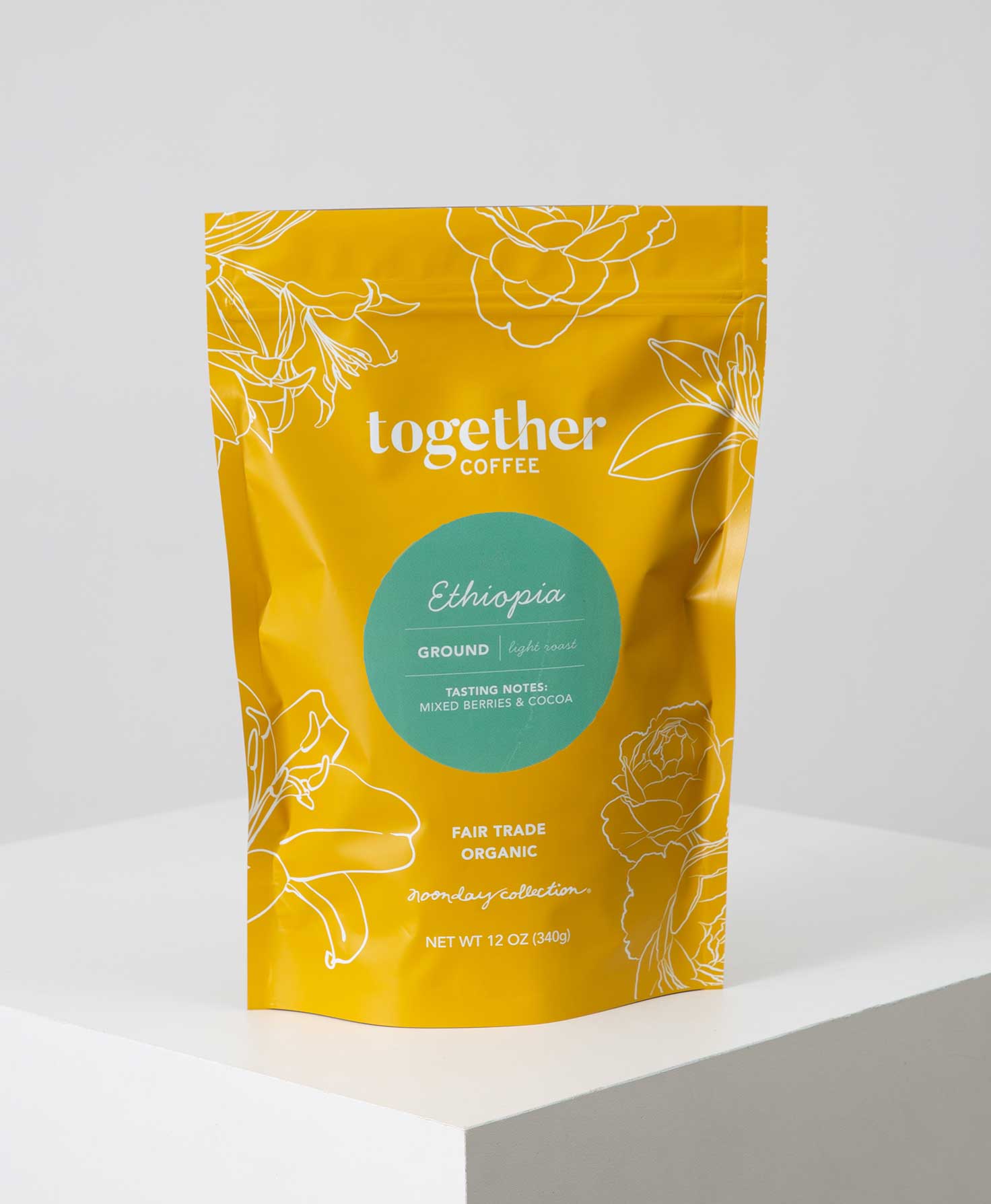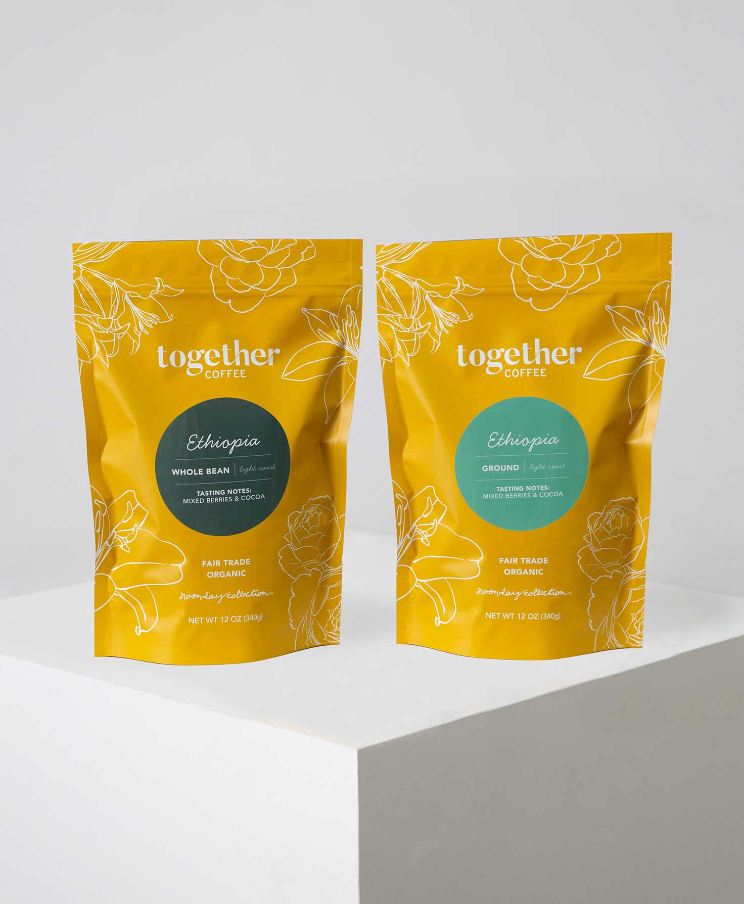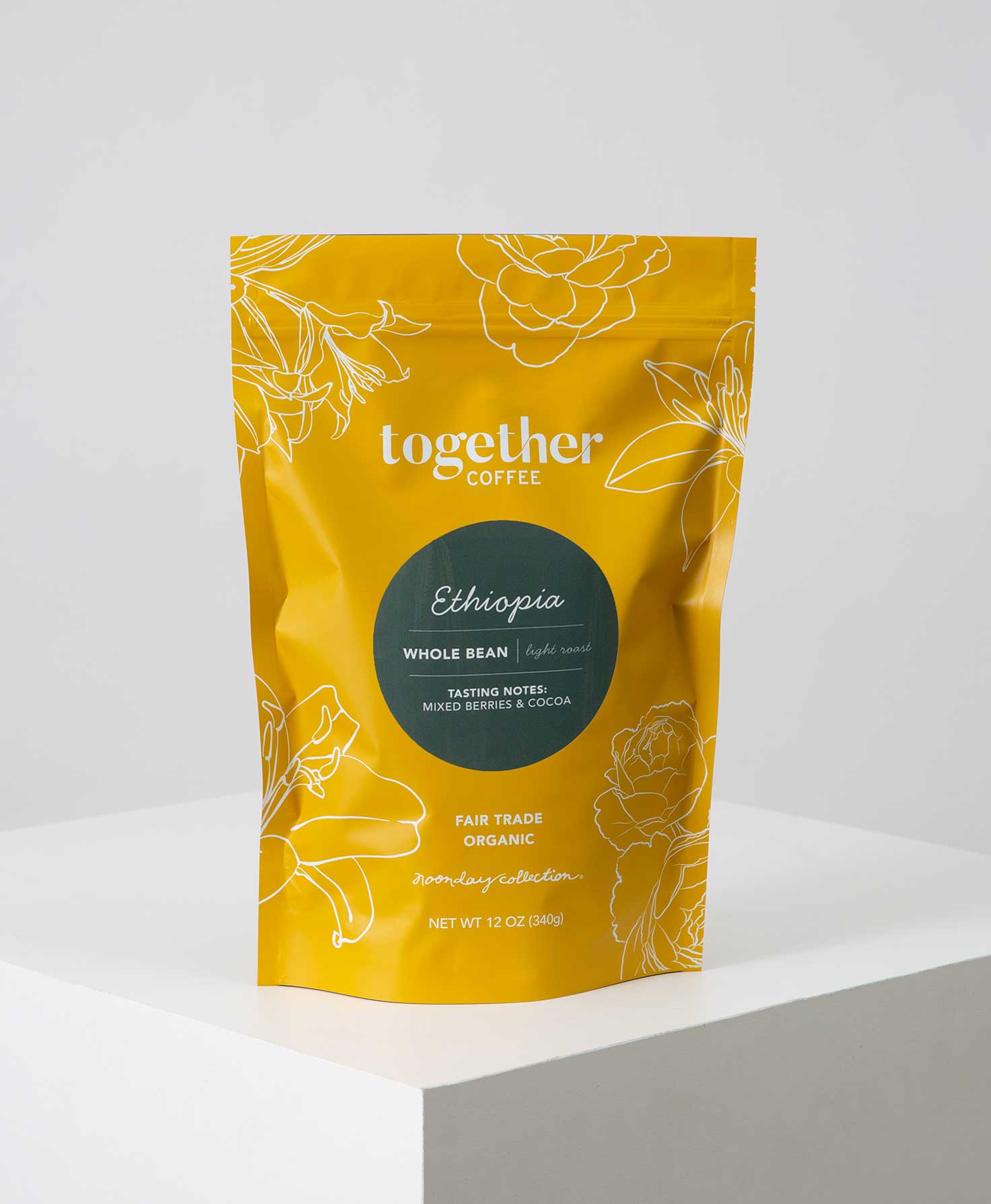 Through our fair trade sourcing partners, Noonday works with small farmer cooperatives around the world committed to impact. For this Ethiopian coffee, we partner with The Sidama Coffee Farmers' Cooperative Union (SCFCU), which is a development organization and technical adviser that represents thousands of farmers in Ethiopia's southern Sidama region. Since 2001, SCFCU has funded the construction of roads, bridges, electric supply stations, and paid for education for thousands of children. The coffee of the Sidama region is grown "garden style" on homesteads under the cover of indigenous shade trees. The roasting is carefully adjusted to enhance the distinctive qualities of the Sidama natural coffee. By drinking Together Coffee, you are changing the world one cup of coffee at a time.