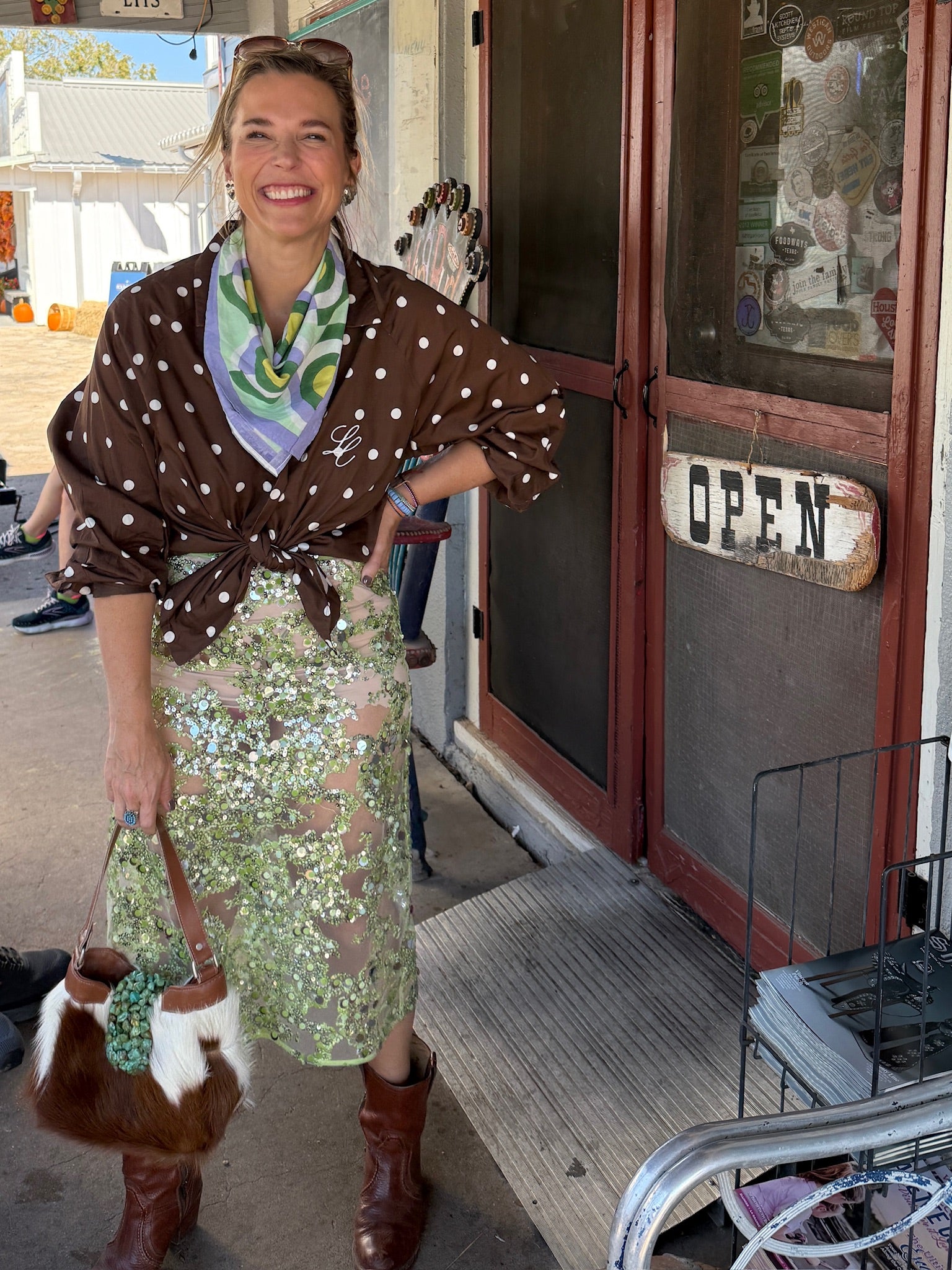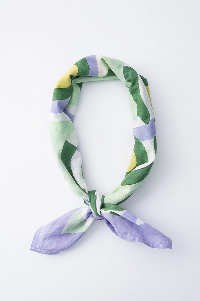 Soft greens and cool lilacs come together in a soothing, organic flow - like a quiet walk through a blooming garden. Hand-block printed on breathable cotton, this piece balances artistry with ease. Wear it as a neck scarf, headband, or hair wrap for a subtle statement.