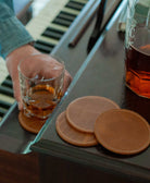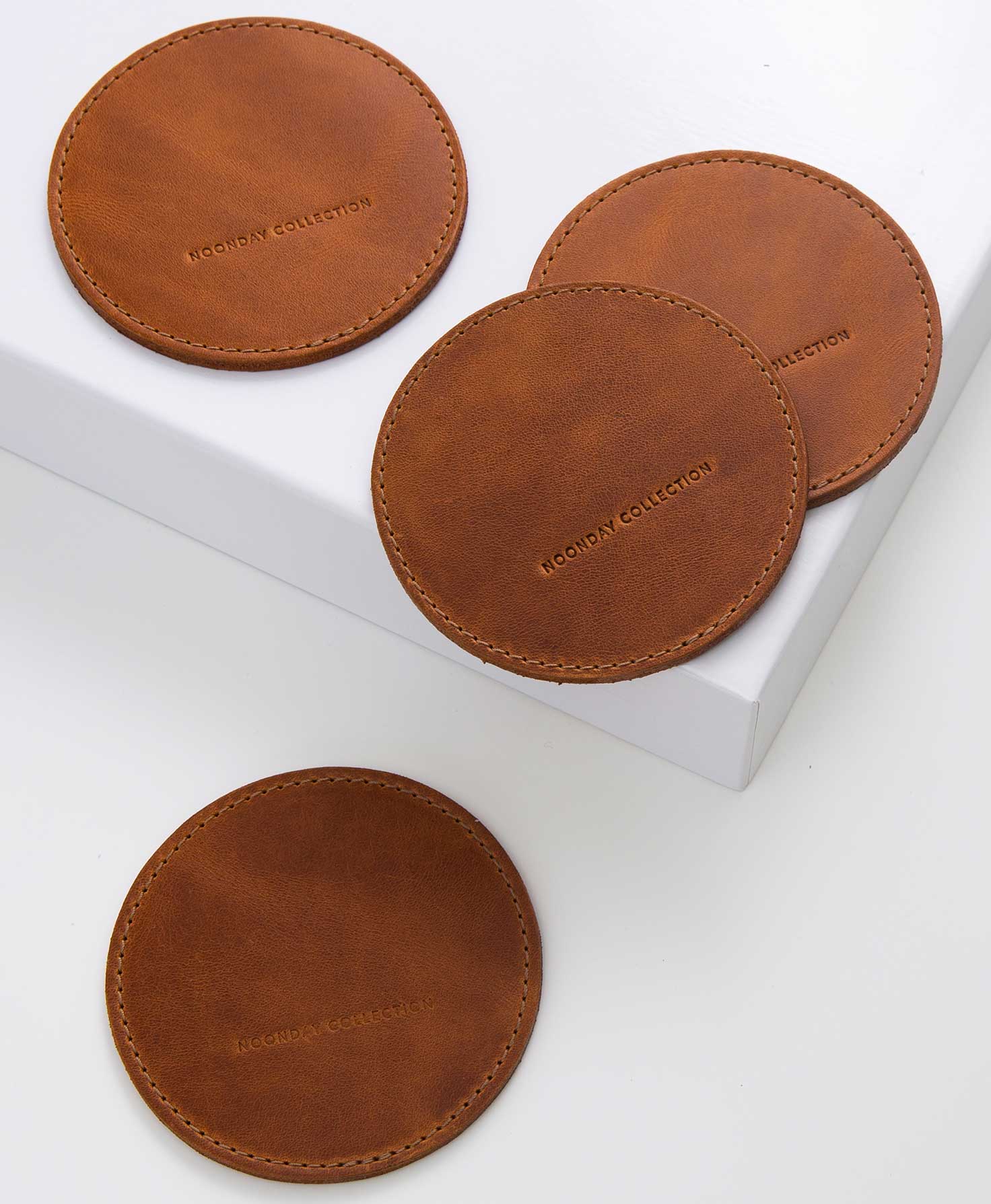 Artisans in Mexico craft these versatile coasters using environmentally sustainable leather. This minimalist set looks stylish on any surface.