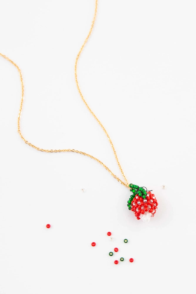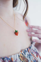 A dainty gold necklace with a bright beaded centerpiece, our Fresita Necklace is sure to become an everyday favorite. No matter the time of year, this strawberry necklace brings the warmth of a summer's day to every look.