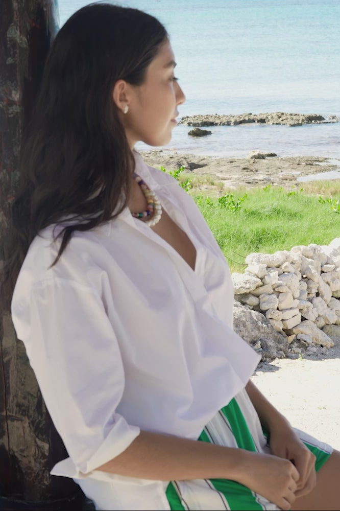 With its easy-to-style color palette and elevated natural materials, the Sahil Necklace is a stylish neutral statement necklace. Delicate disc-shaped beads the color of warm clay perfectly contrast with the pearlescent beads below.