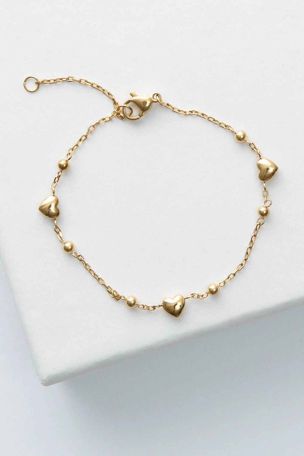 The Guided Heart Bracelet is a delicate reminder to lead with intention. Designed with a fine gold-tone chain and softly polished heart accents, this bracelet brings meaning and simplicity together in an easy, everyday piece.