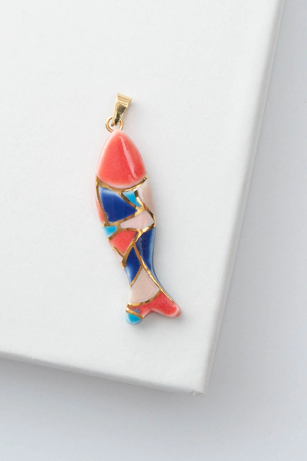Full of color, character, and handcrafted charm, the Mosaic Fish Charm brings a playful pop of artistry to your jewelry stack. Made from porcelain and finished with gold-plated brass details, each fish is carefully hand-painted in a vibrant mosaic of hues—no two are exactly alike.