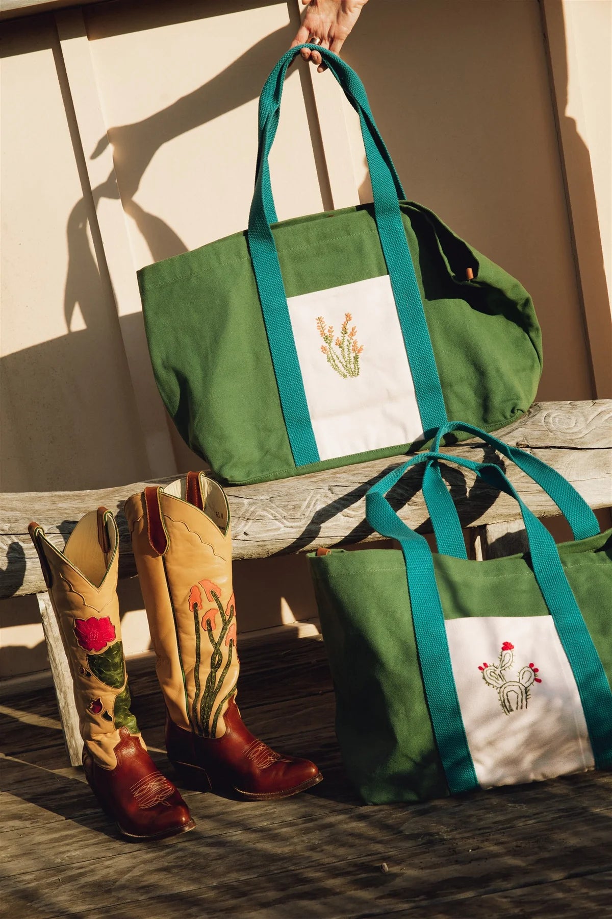 This collaboration with Noonday Collection brings that story to life in a new way. Our embroidered tote bags are inspired by our new Cactus Boot—each one hand-stitched by artist Carla Valencia. Crafted with care, every bag captures the spirit of West Texas—timeless, functional, and made to carry your story wherever you roam.