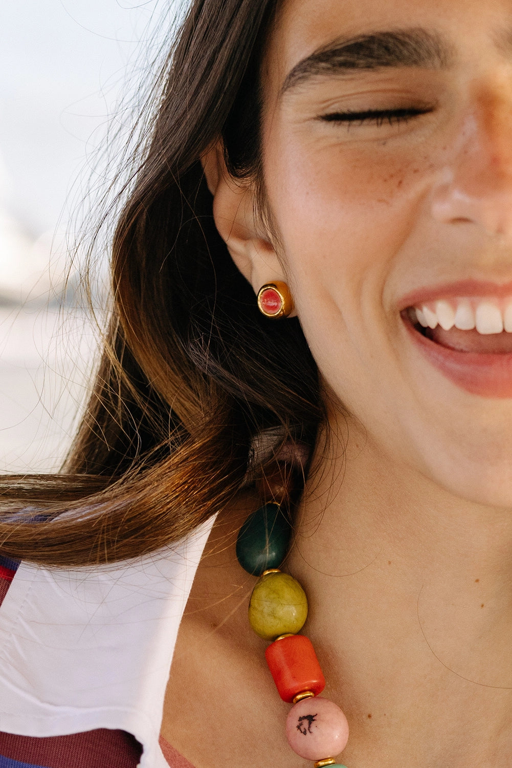 Add some elevated brightness to your look with these lightweight porcelain earrings. Coral porcelain is outlined in gleaming gold luster for an elegant everyday earring. These classic studs feature a surgical steel ear post, making them ideal for sensitive ears.