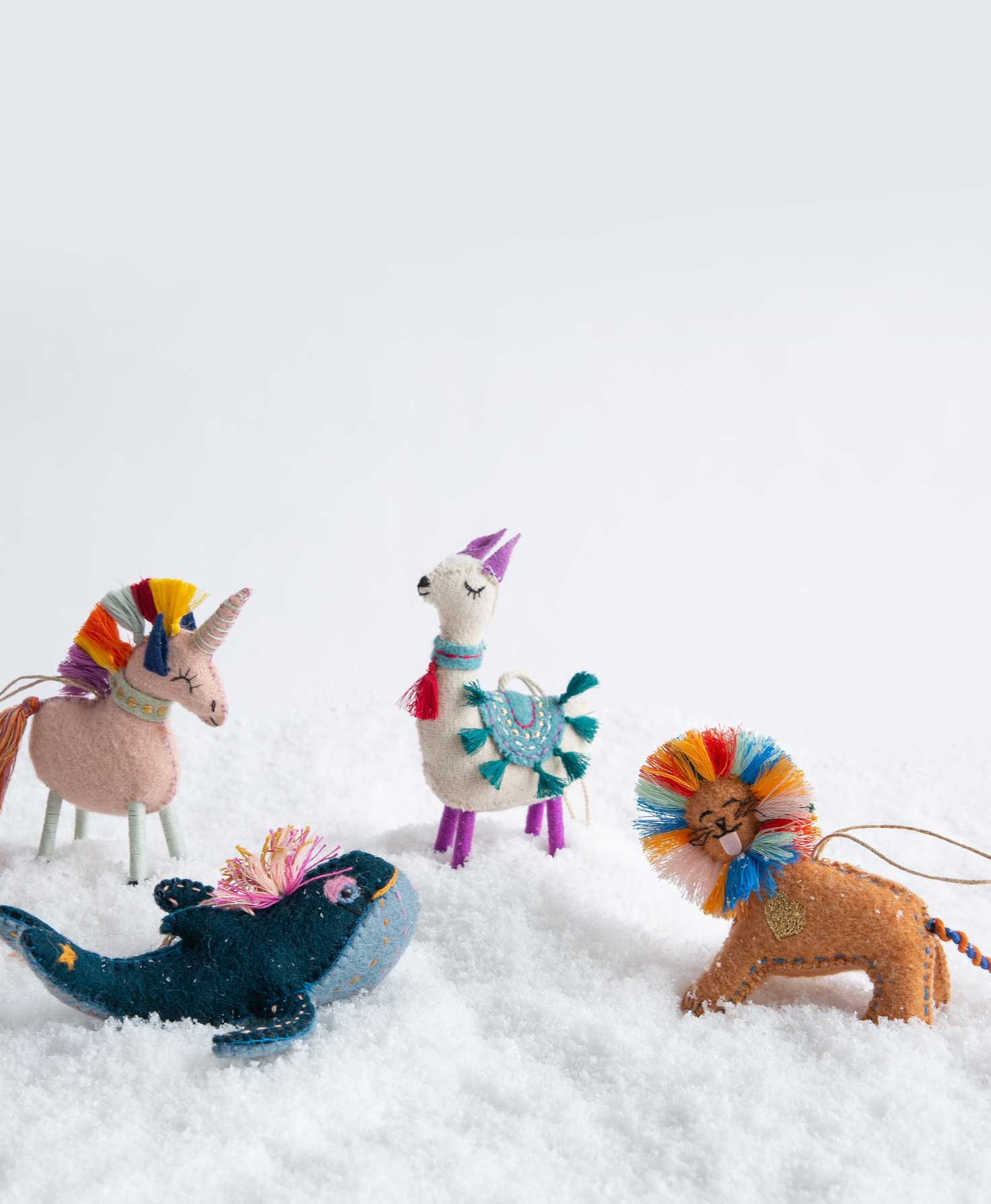 Hand-dyed felt and detailed stitching are brought together to bring this ornament to life. Use it add a whimsical touch to your decor, or gift it to a holiday hostess as a sweet thank you.
