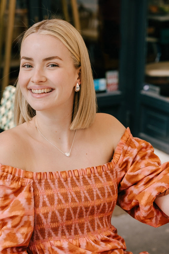 These elegant silver studs feature a natural teardrop shape with an organic and fluid look. Composed of stunning sterling silver plated bronze, the Dew Drop Studs are the perfect size--small enough to look lovely with any style, and significant enough to make a refined statement.