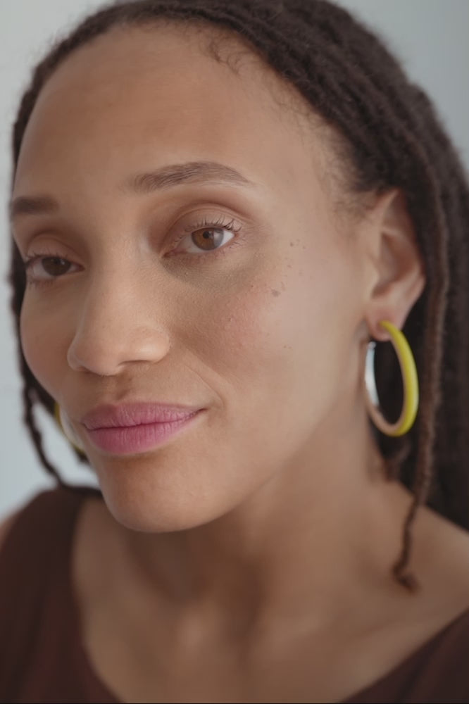 These large yellow hoops bring a modern twist to the classic hoop earring. Each earring has a bronze base that is coated in shining sterling silver. A layer of resin in a cheerful yellow hue wraps around the outside of the hoop, giving this pair a stylish two-tone quality.