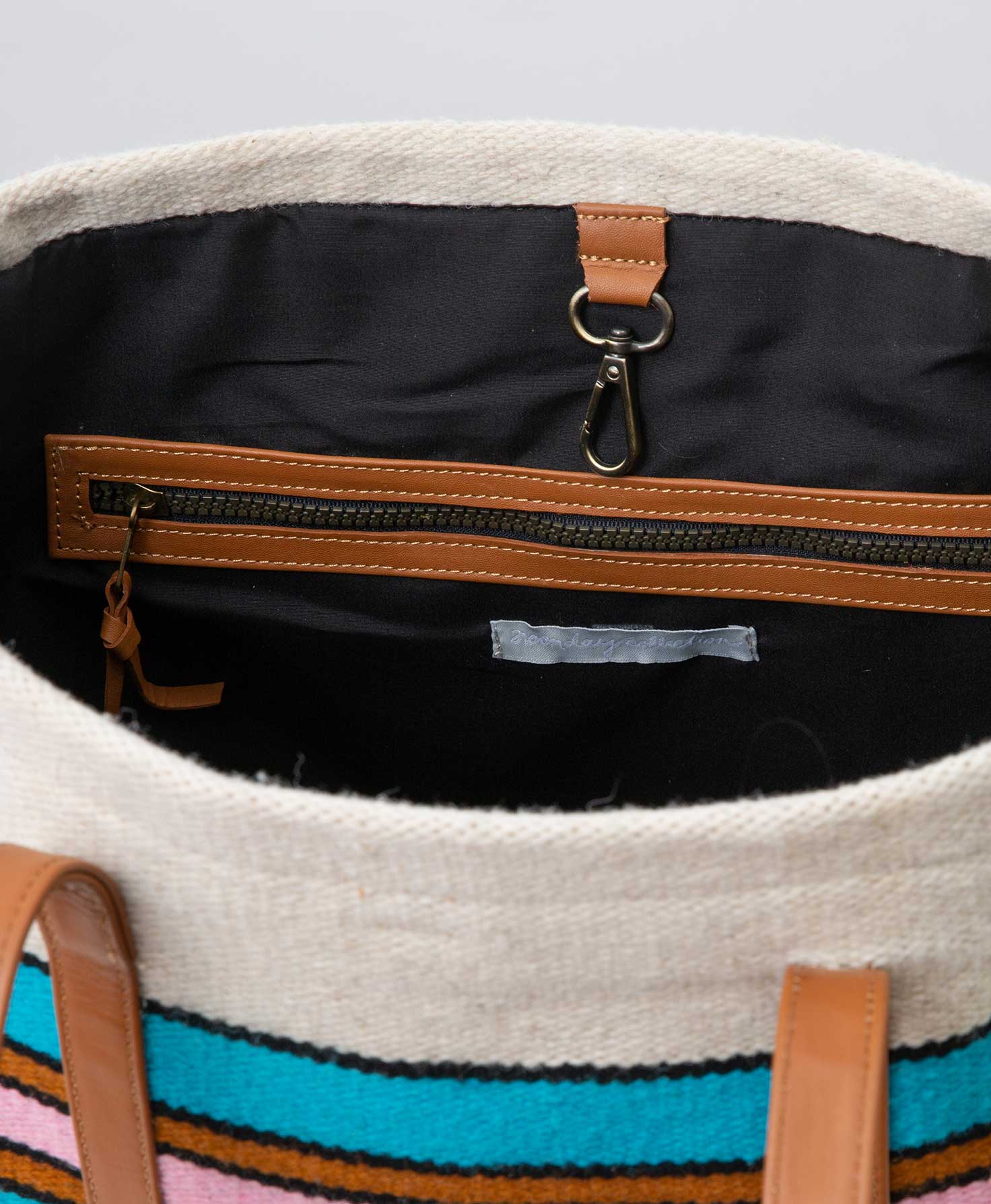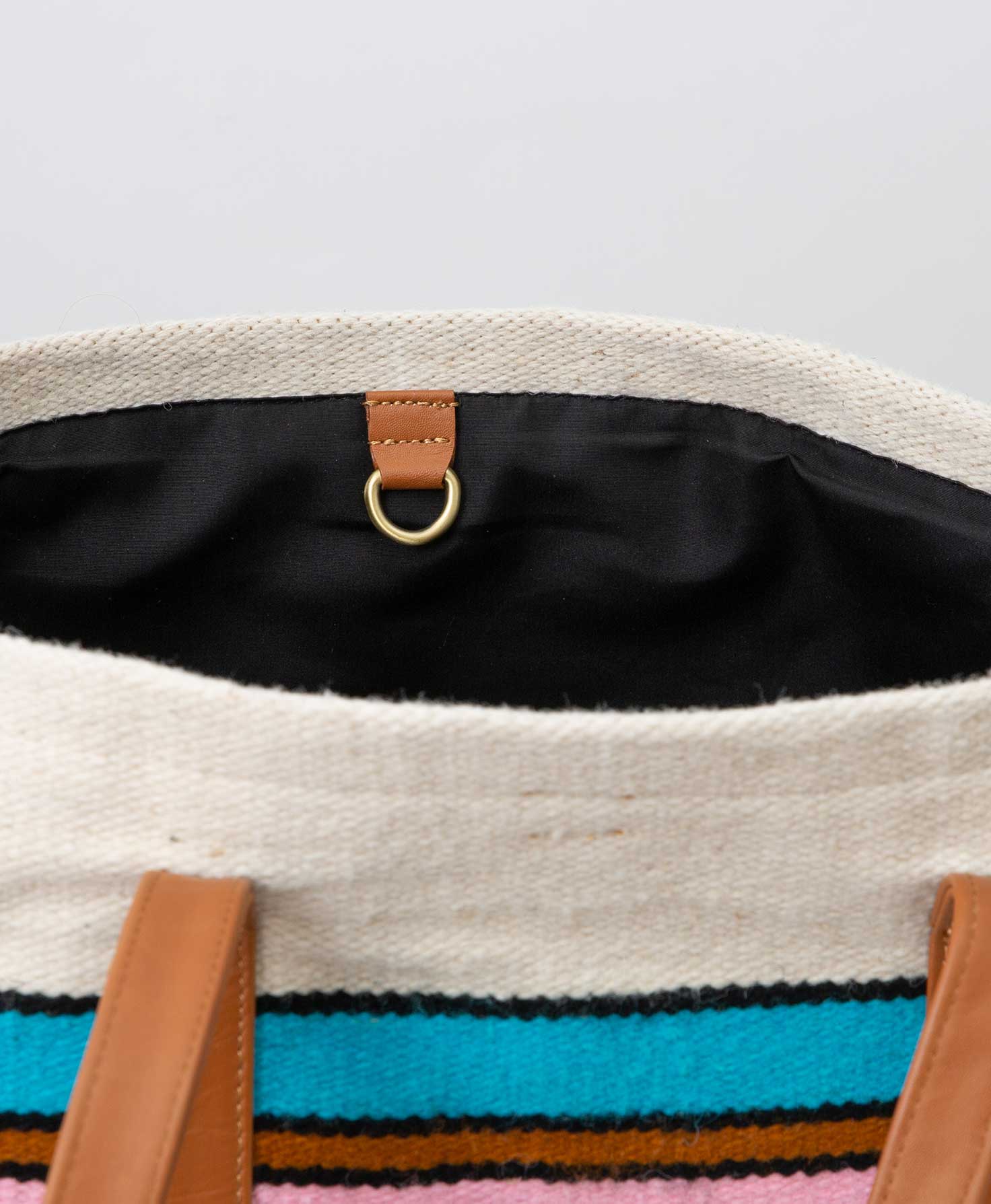 This spacious tote will hold everything you need, no matter where your day takes you. Crafted from sturdy and eye-catching wool, the Open Skies Tote brings a modern twist to a traditional Peruvian craft. Modern stripes in an array of bright shades are accented with ric-rac style borders. The tote is finished with classic caramel-colored leather for an accessory that's as strong as it is chic.