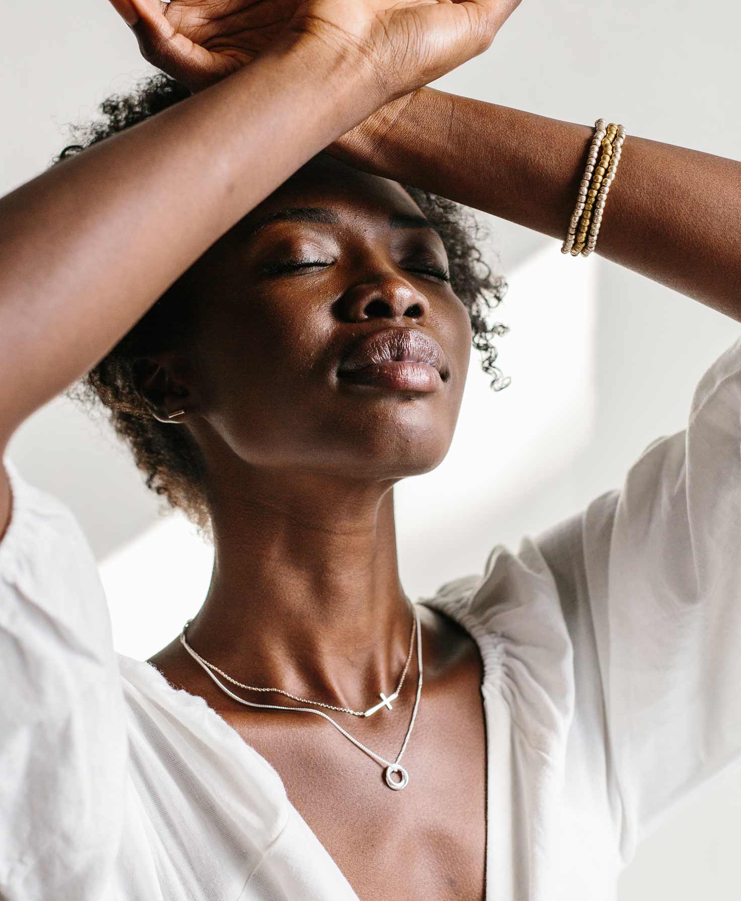 Each Storyline piece captures a feeling, attribute, or aspiration and gives opportunity to a woman across the globe. This delicate necklace says, "My faith is my abiding comfort and solace. Through it, all things are possible."
