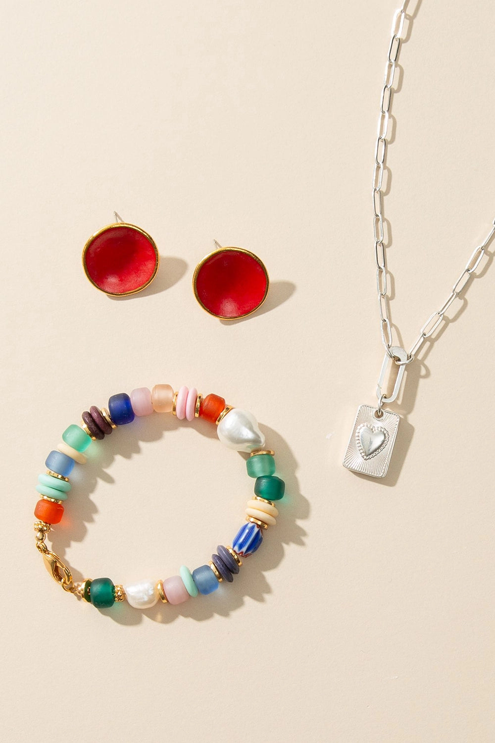 Handcrafted in Thailand, these porcelain stud earrings feature a vibrant circle of orange-red porcelain outlined with gleaming gold luster. The bold color and clean silhouette create a striking yet minimalist statement earring that easily elevates everyday style. Lightweight and comfortable, these porcelain earrings are finished with surgical steel posts, making them a beautiful and practical choice for sensitive ears.