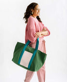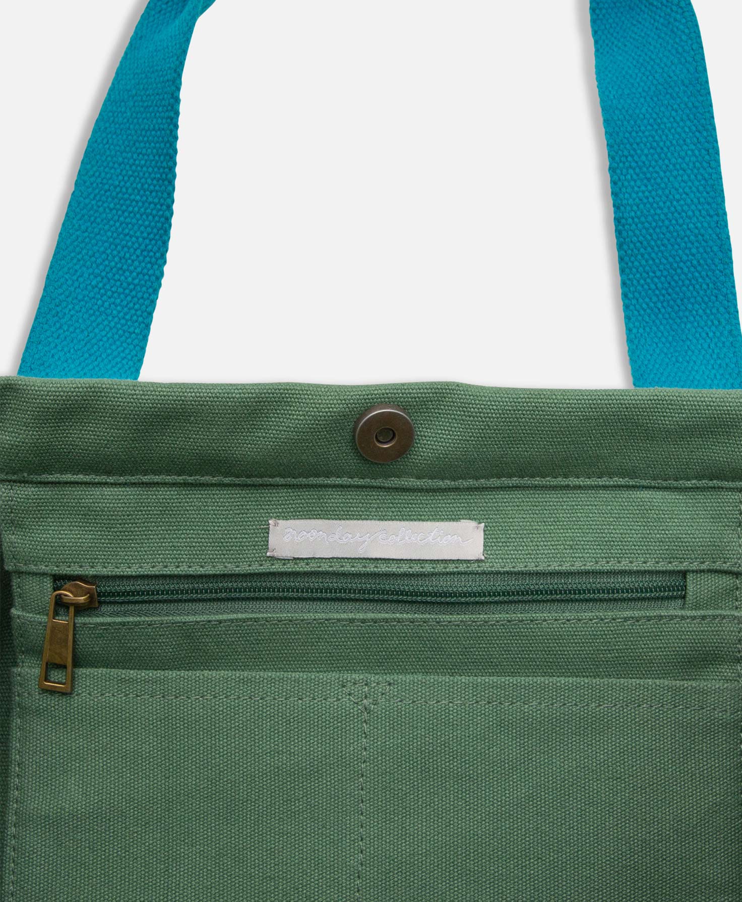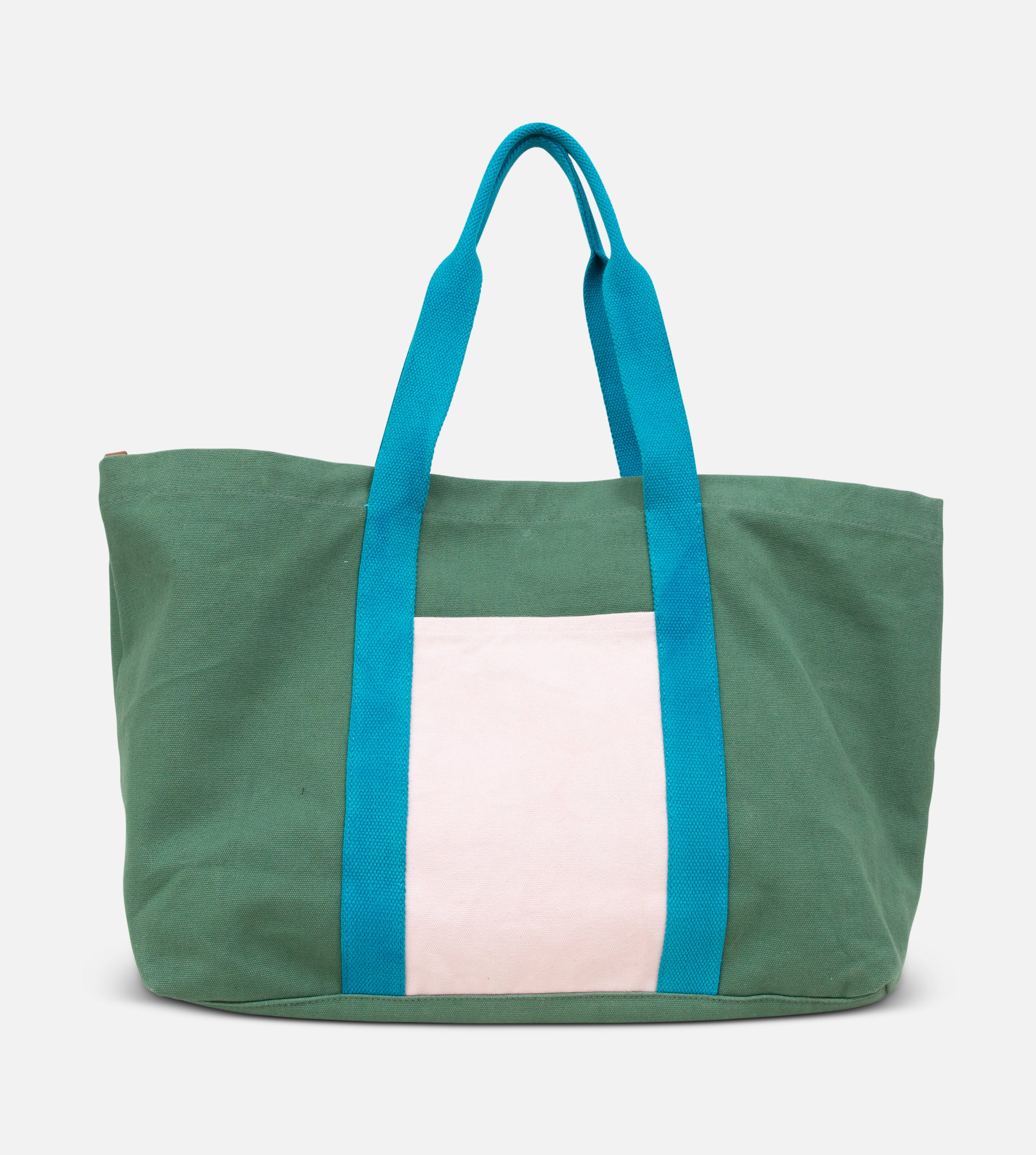 Roomy and cute-as-heck, this new carry-all tote is made with colorful cotton canvas, leather trim, and a polyester handle. Use it as a laptop bag, a diaper bag, or even a beach bag!