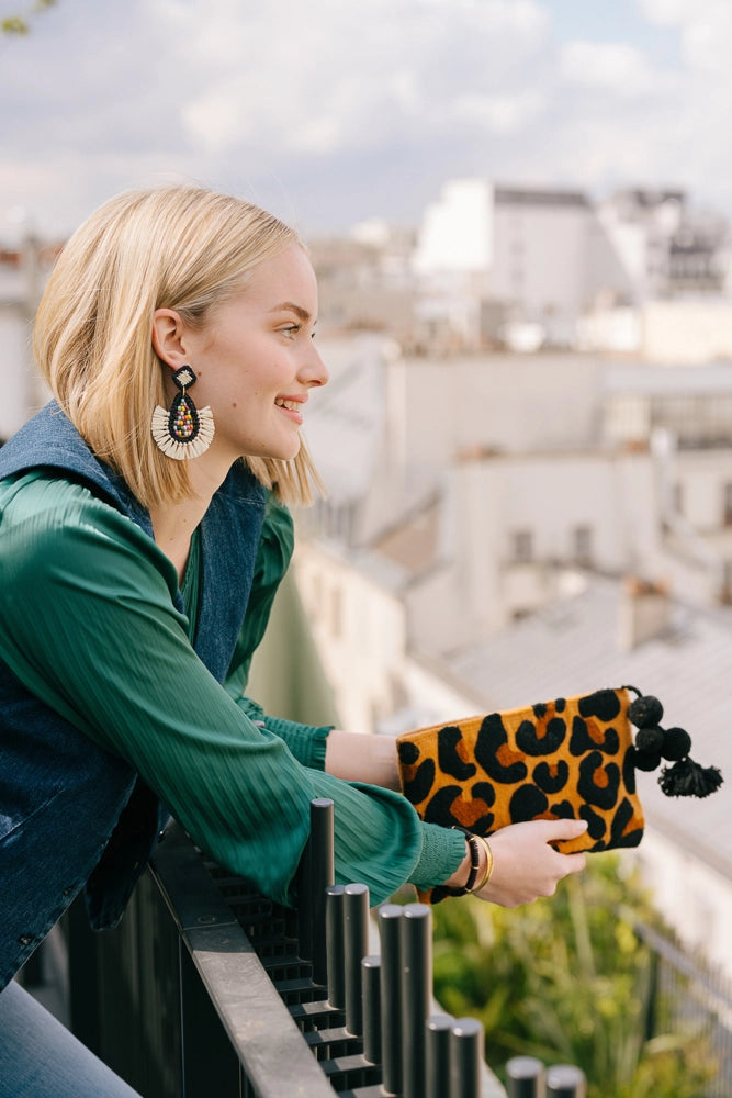 We love a fringed chandelier earring, and our Gulal Earrings from India are bringing this fan favorite shape to new heights. Diamond shaped studs anchor a teardrop of vibrant beads that are finished with festive fringe. The perfect going-out earring, the Gulal Earrings can be dressed up or down depending on your destination.