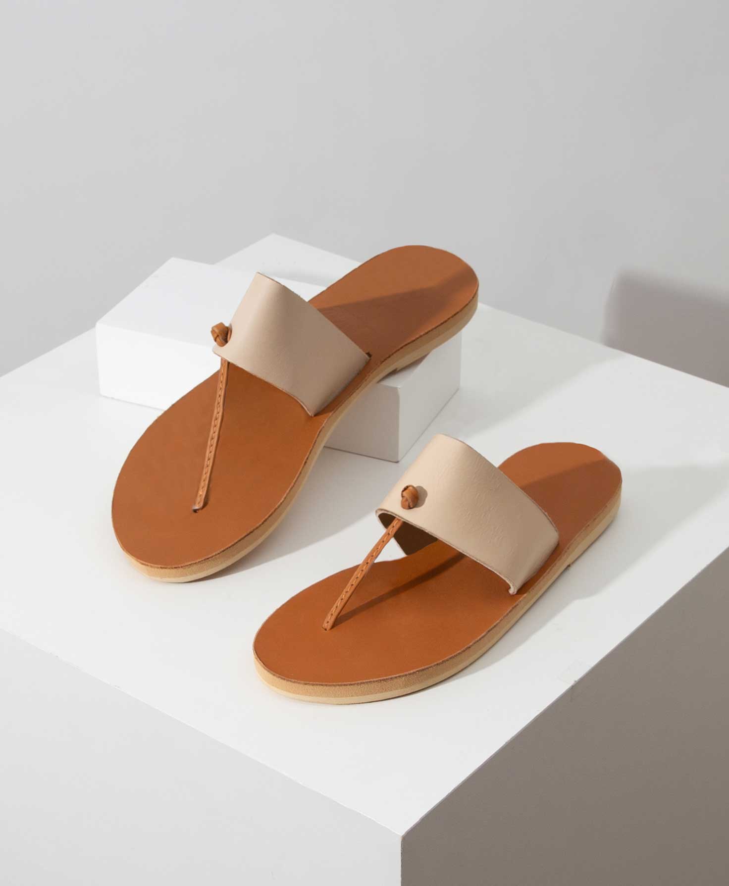 Leather in classic shades of alabaster and caramel come together for this endlessly wearable sandal. Neutral enough to look great with any outfit, but eye-catching enough to make every look feel just a little more polished.