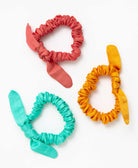 Made with elastic and satin silk, these compact scrunchies with a slight stretch are perfect to adorn your wrist or to make every day a good hair day.