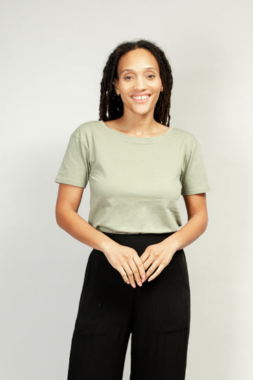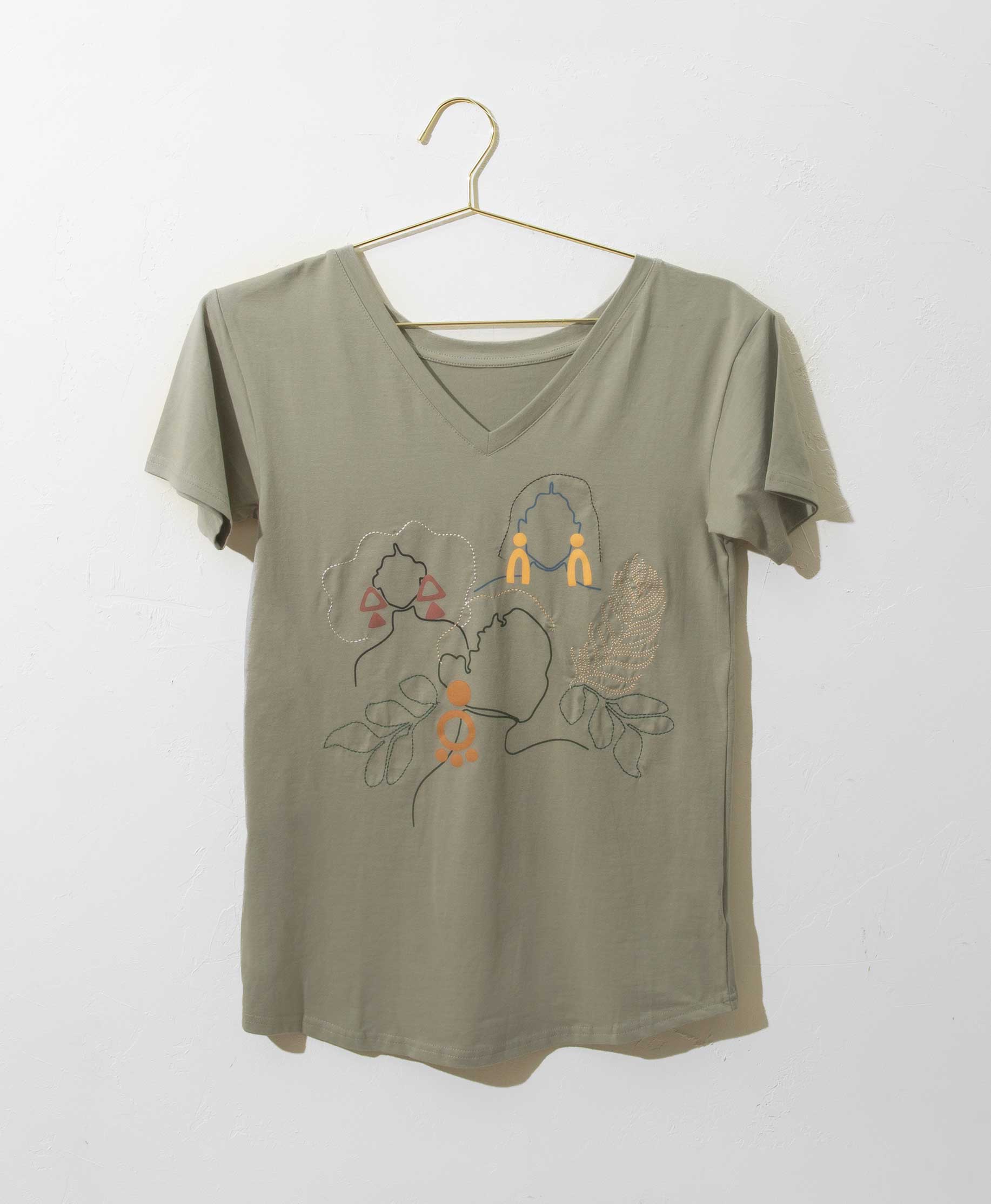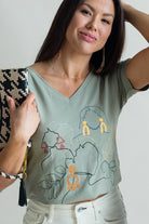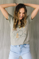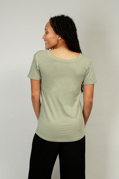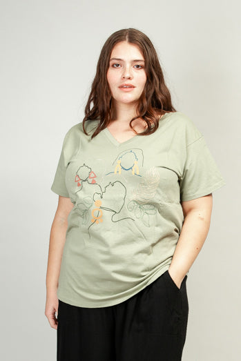 We named this top Vita, but it might as well be called Vital, because we think it's an everyday essential. Featuring modern line drawing-style art set against a classic sage background, this is the perfect tee to wear around the house or to dress up with some fun accessories for a day out and about.